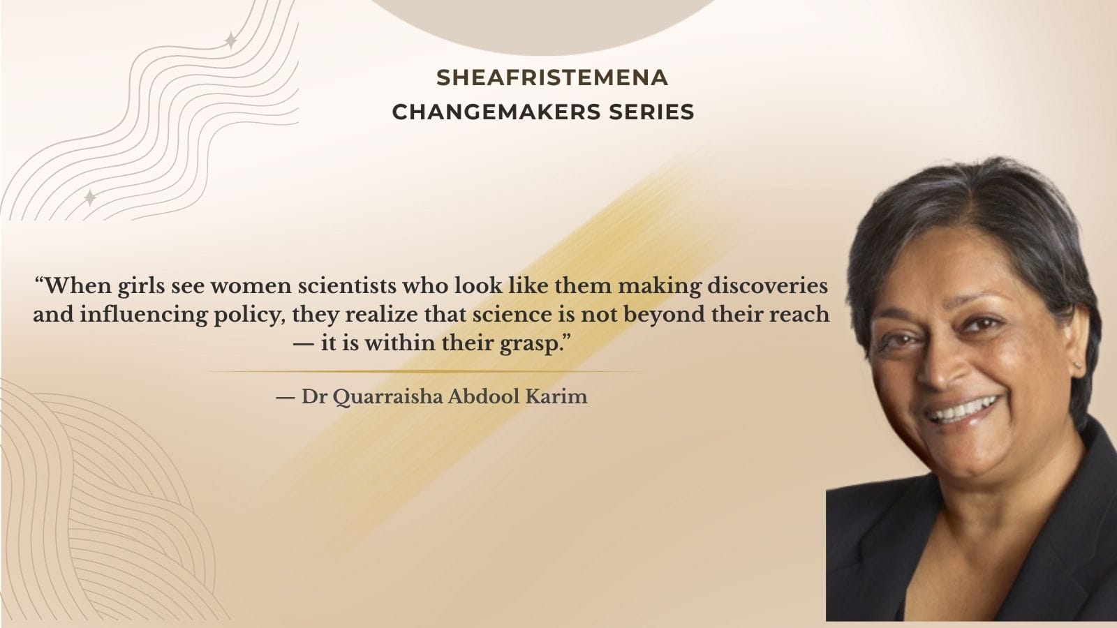 For Dr. Quarraisha Abdool Karim, science has never been separate from justice — and that belief runs through every part of her journey. In this special SheAfriSTEMENA Changemakers Conversation, she reflects on equity, leadership, and the evolving role of women in science across Africa and the Global South. Her words remind us that discovery alone is not enough; it must serve humanity, open doors, and inspire those who follow.
